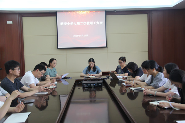 此次教代会取得圆满成功,为新安小学实施第三轮岗位设置,构建比例协调、层级清晰、岗责明确、整体高效的教育岗位管理机制创造了良好条件。
