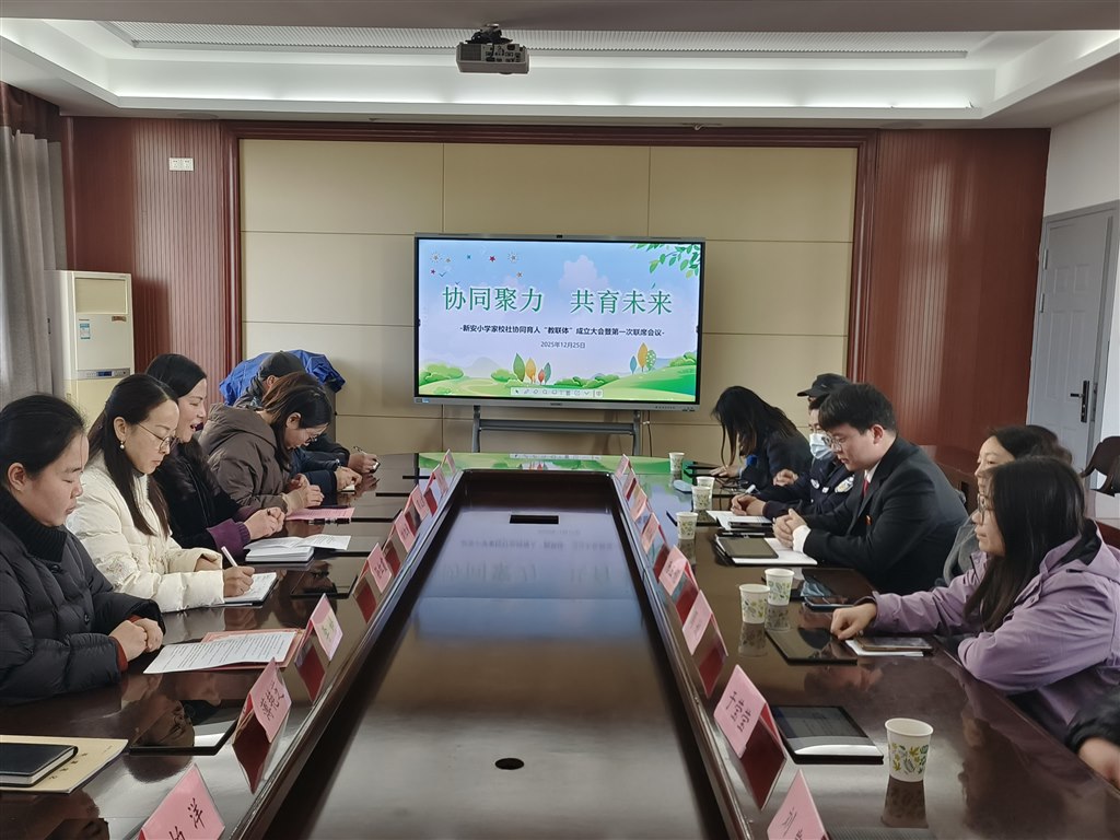 为深入整合教育资源,创新育人机制,汇聚学校、家庭与社会三方合力,共同促进学生全面发展,经过前期周密筹备,12月25日,新安小学家校社协同育人“教联体”成立大会暨第一次联席会议隆重举行。学校、社区、法院、医院、派出所、家长等多方代表齐聚一堂,以“教联体”建设为核心,共同擘画家校社协同育人新蓝图。