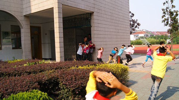 演练前,学校结合实际情况,认真细致的制定此次演练活动方案,召开全体教师动员会议,明确职责要求。在演练过程中,随着警报的响起,各位老师立即到达指定岗位,确保演练过程的安全,认真协助并指导学生有序快速疏散;正在教学楼教室里上课的学生立即从座位上起立,快速有序的奔向走廊;各班任课教师带领学生根据应急预案中规定的路线,弯着腰、猫着步,沿着学校指定楼梯口快速前进,有序撤离到学校操场的安全地带,随即各班主任清点人数,并层层向上汇报,演练整个过程历时不到两分钟,600多名师生全部安全疏散完毕。整个过程紧张有序、实用性强,达到了预期效果。