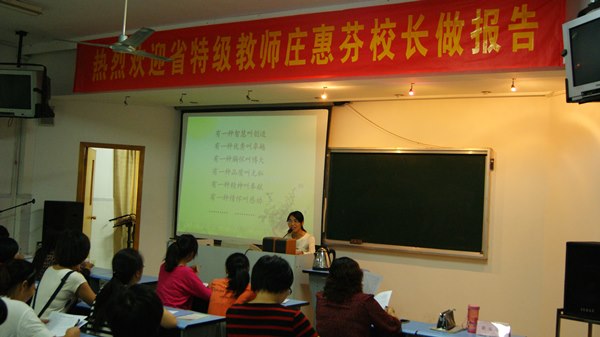 都说庄惠芬校长不仅课上得好,更让人不可思议的是她有一支马良的神笔,写得一手好论文,三年之内在核心期刊上发表论文30多篇,举行专题讲座60多次,出版了两部专著……她是一位睿智、大气的学者型教师。
